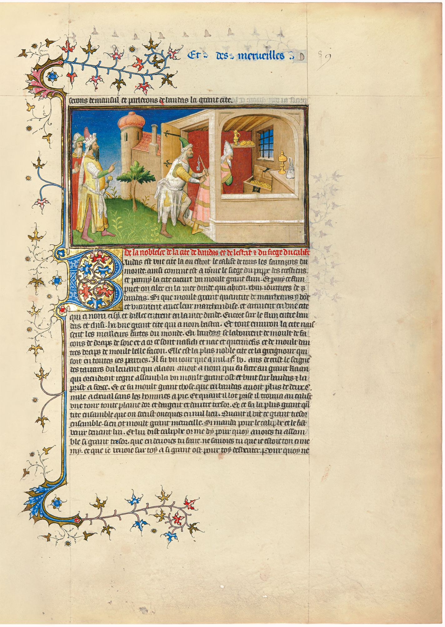 Baghdad è una città molto grande; lì risiedeva il Califfo di tutti i Saraceni del mondo, così come a Roma si trova la sede del Papa dei cristiani. In mezzo alla città scorre un grande fiume attraverso il quale si può giungere fino al Mare dell'India; e di lì vanno e vengono i mercanti con le loro merci.